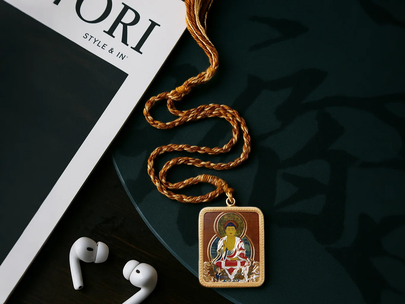 The scarf is crafted with precision machinery for rolled hems, featuring smooth and reinforced edges that ensure durability and resistance to unraveling. Every detail embodies exquisite artistry.The amulet case features a brass frame with gold plating and a glass surface panel. At its core, the frontal Buddha image is meticulously hand-carved in copper — entirely crafted by hand.The hat is crafted entirely from cotton through a comprehensive manufacturing process, offering high color fastness, exceptional breathability, resistance to fading, and anti-pilling properties., bringing together practicality and timeless aesthetic appeal.